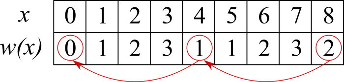 Once the table is ready, the answer to our question about the minimum number of coins can be read off its last entry, . However, if we want to know the details of the solution, e.g. which coins add up to , we have to trace back Eq. (16):